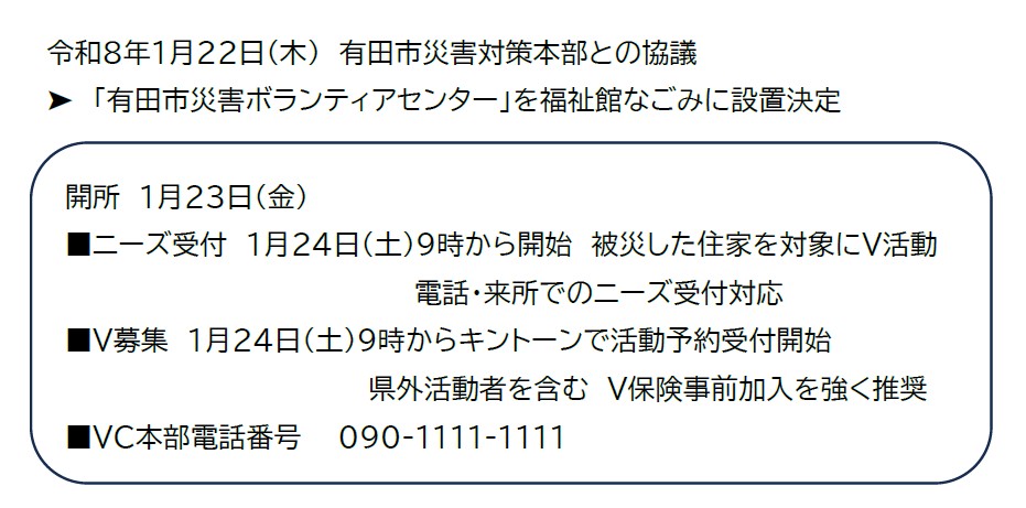 これまで、有田市社協では災害ボランティアセンター(VC)担当職員がチラシやSNS投稿を担ってきました。