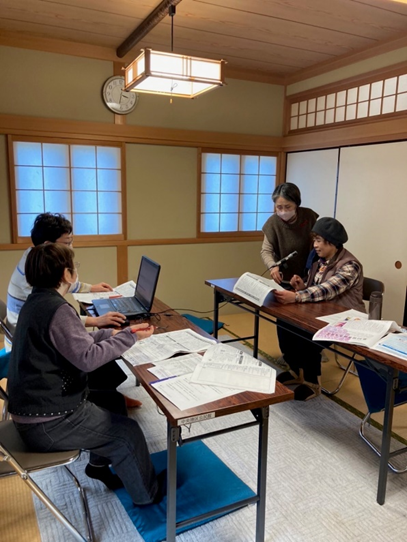「ささやき」の皆さんは、有田市全域に会員がおられ、地区ごとにチームを作って活動されています。今月は箕島宮原チームによる古江見中央公民館での録音でした。