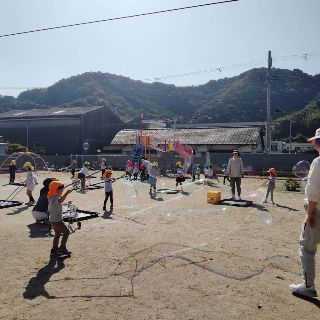 有田市内の保育所(・古江見保育所  ・宮崎町保育所 ・そとはま保育所 ・宮原保育所 ・保田保育所)にて「バブルショー」をさせていただきました。