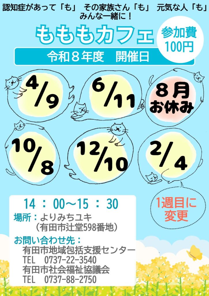 令和8年度の『もももカフェ』開催日をお知らせします(*^^*)