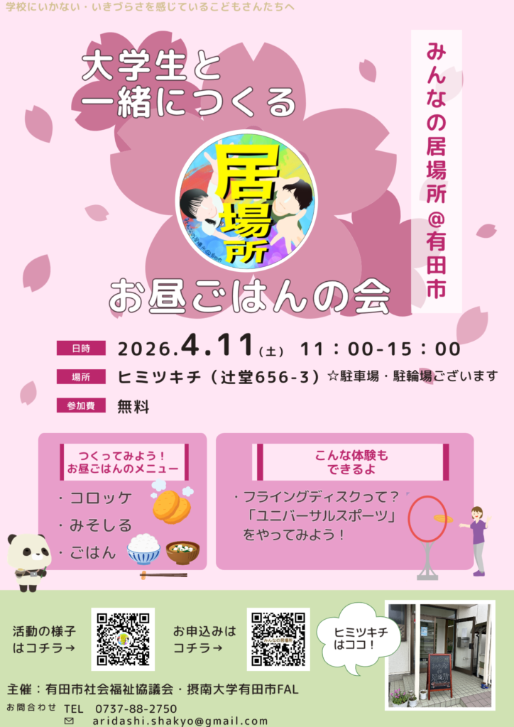 「みんなの居場所@有田市」くわしい情報&申込フォーム