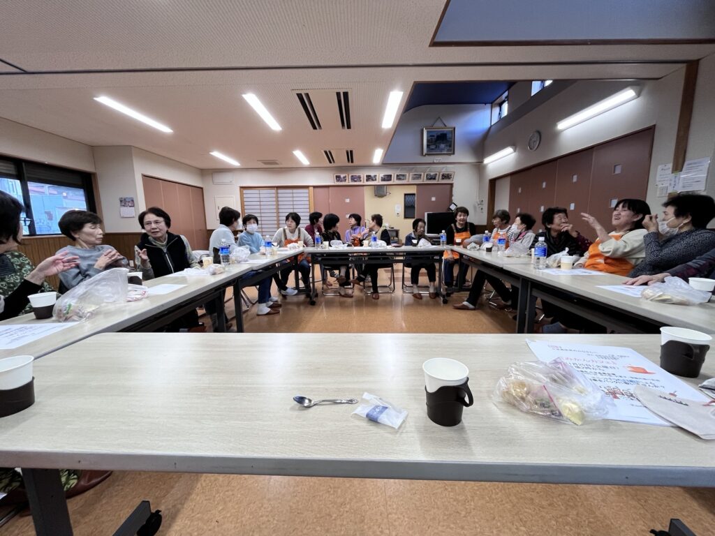 2025年4月から新しくできたサロンになります。主に茶話会ですが、ハーモニカ演奏の鑑賞などもします!いきいき百歳体操の後に参加する方が多いです。