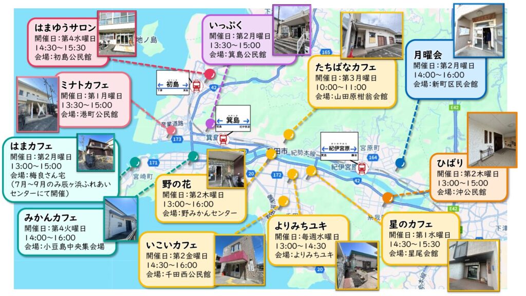 | はまカフェ | 第2月曜日 | 13:00~15:00 | 梅良さん宅 (7月~9月のみ辰ヶ浜ふれあいセンター) |